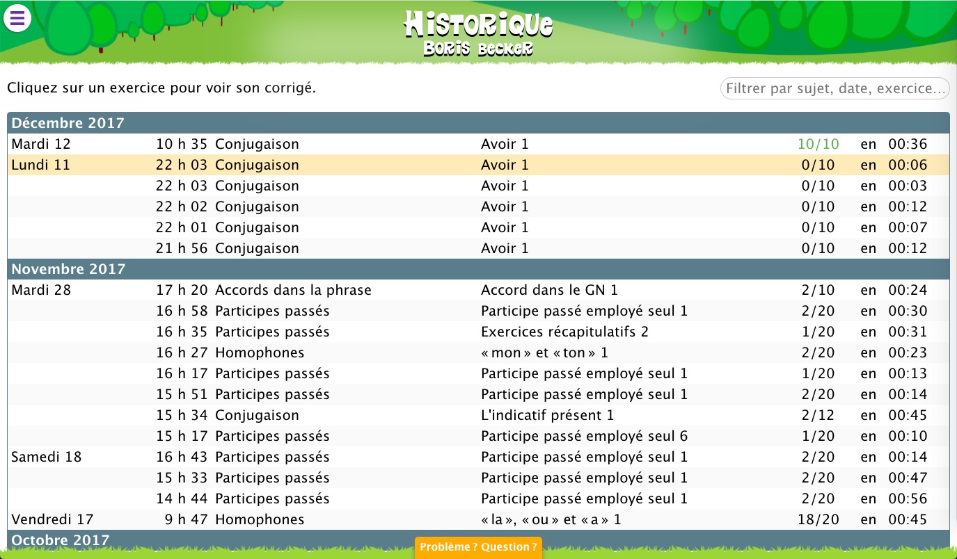 Chaque élève dispose de son compte. Depuis votre compte enseignant, vous avez accès à tous les résultats où vous pouvez mesurer le travail et les progrès accomplis.