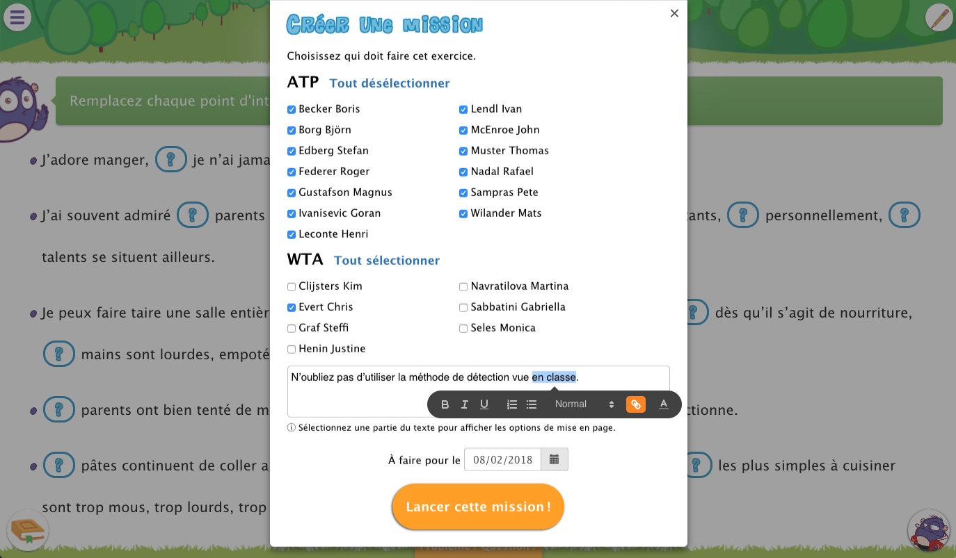 Quelques clics et vous confiez à vos élèves une mission à faire, en classe ou à la maison.
