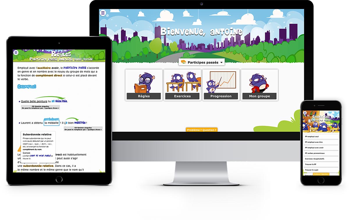 Avec une sélection sans cesse enrichie de plus de 6 000 questions interactives, vous couvrez vos besoins en matière d’exercices de français pour l’année.