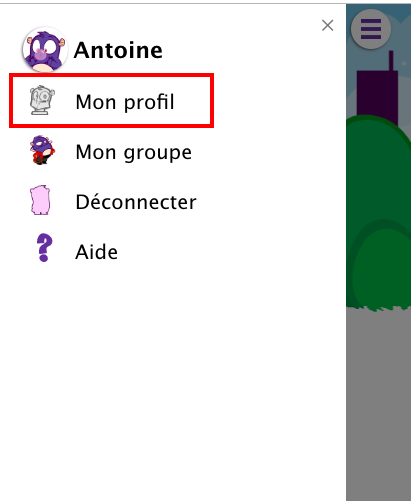 Pour modifier votre nom d’utilisateur et votre avatar, il vous suffit d’afficher votre profil d’utilisateur en cliquant sur l’icône de menu (les trois barres - le « hamburger » - en haut à gauche) puis sur l’option « Mon profil ».