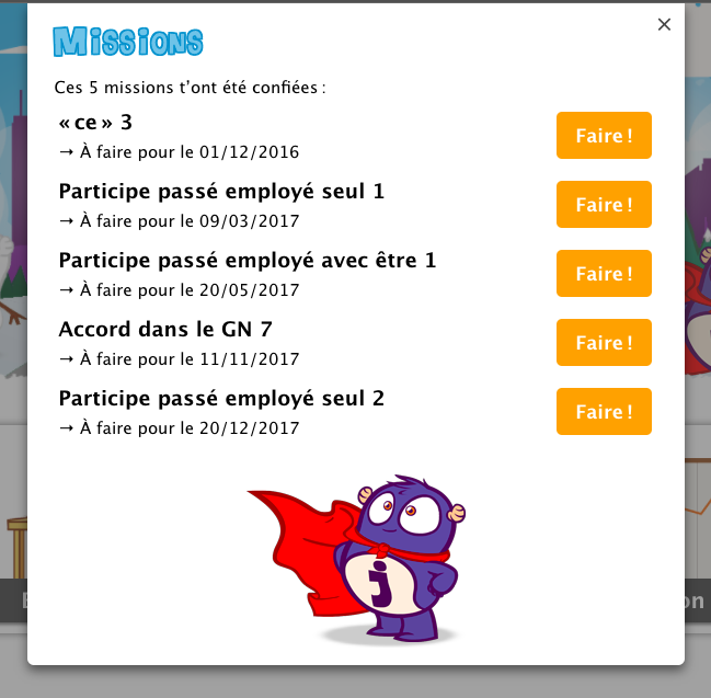 Quand ils reçoivent une nouvelle mission, vos élèves en sont informés par un message de Supergugusse sur leur écran d’accueil.